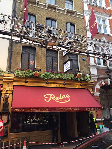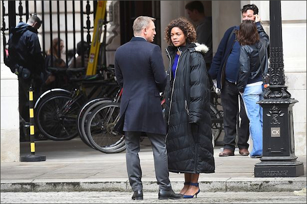 W piątek, 22 maja, realizowano zdjęcia w Rules – założonej w 1798 roku najstarszej londyńskiej restauracji, położonej przy Maiden Lane. Wzięli w nich udział Ralph Fiennes, Ben Whishaw i Naomie Harris. Na ulicy przed restauracją specjalne zraszacze imitowały padający deszcz.