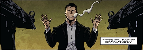 Swoją drogą Ennis w ostatniej serii Dynamite Entertainment popełnia dokładnie ten sam błąd, co przed dziesięcioma laty Warren Ellis (skądinąd inny wybitny scenarzysta) w pierwszym komiksie tej oficyny (Vargr) – James Bond przedstawiany jest w nich jako pozbawiona skrupułów i moralności maszyna do zabijania. Dla przykładu: 007 nie waha się rozprawić z całą rodziną jednego z południowoamerykańskich baronów narkotykowych, słusznie podejrzewając ich o planowanie wendety (wcześniej zabił syna owego barona). Ale robi to bez rozkazu, na własną rękę. A nestorkę rodu, starą i zniedołężniałą kobietę, morduje z zimną krwią, rzucając pod nosem “Better safe than sorry”. Bond Ennisa nie ma kompletnie nic wspólnego z bohaterem wykreowanym przez Iana Fleminga, co świadczy o głębokim niezrozumieniu tej postaci.