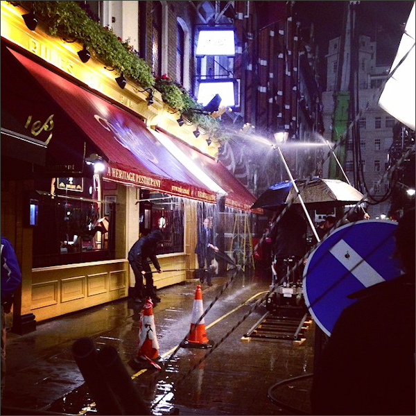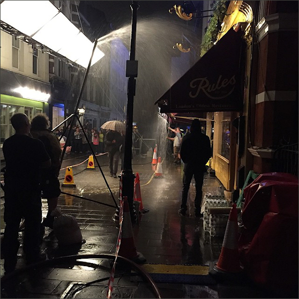 W piątek, 22 maja, realizowano zdjęcia w Rules – założonej w 1798 roku najstarszej londyńskiej restauracji, położonej przy Maiden Lane. Wzięli w nich udział Ralph Fiennes, Ben Whishaw i Naomie Harris. Na ulicy przed restauracją specjalne zraszacze imitowały padający deszcz.