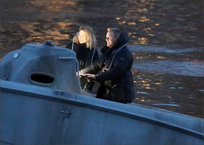 W niedzielę, 17 maja pomiędzy mostami Vauxhall Bridge, Lambeth Bridge oraz Westminster Bridge na wysokości 45 metrów krążył helikopter, ścigany przez pędzącą po wodach Tamizy motorówkę z Danielem Craigiem i Léą Seydoux na pokładzie. Dodajmy, że w scenie tej śmigłowiec był ostrzeliwany przez Bonda z pistoletu.